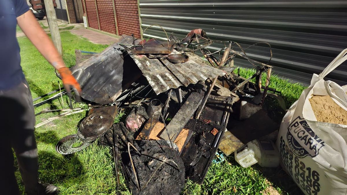 El joven valoró el aporte clave de los bomberos y vecinos que evitaron que las llamas llegaran a la zona de las habitaciones. El incendio se centró en ese galpón donde se realizaban diferentes trabajos, entre ellos la reparación de aires acondicionados y motos, en este último caso por parte de uno de los hijos.