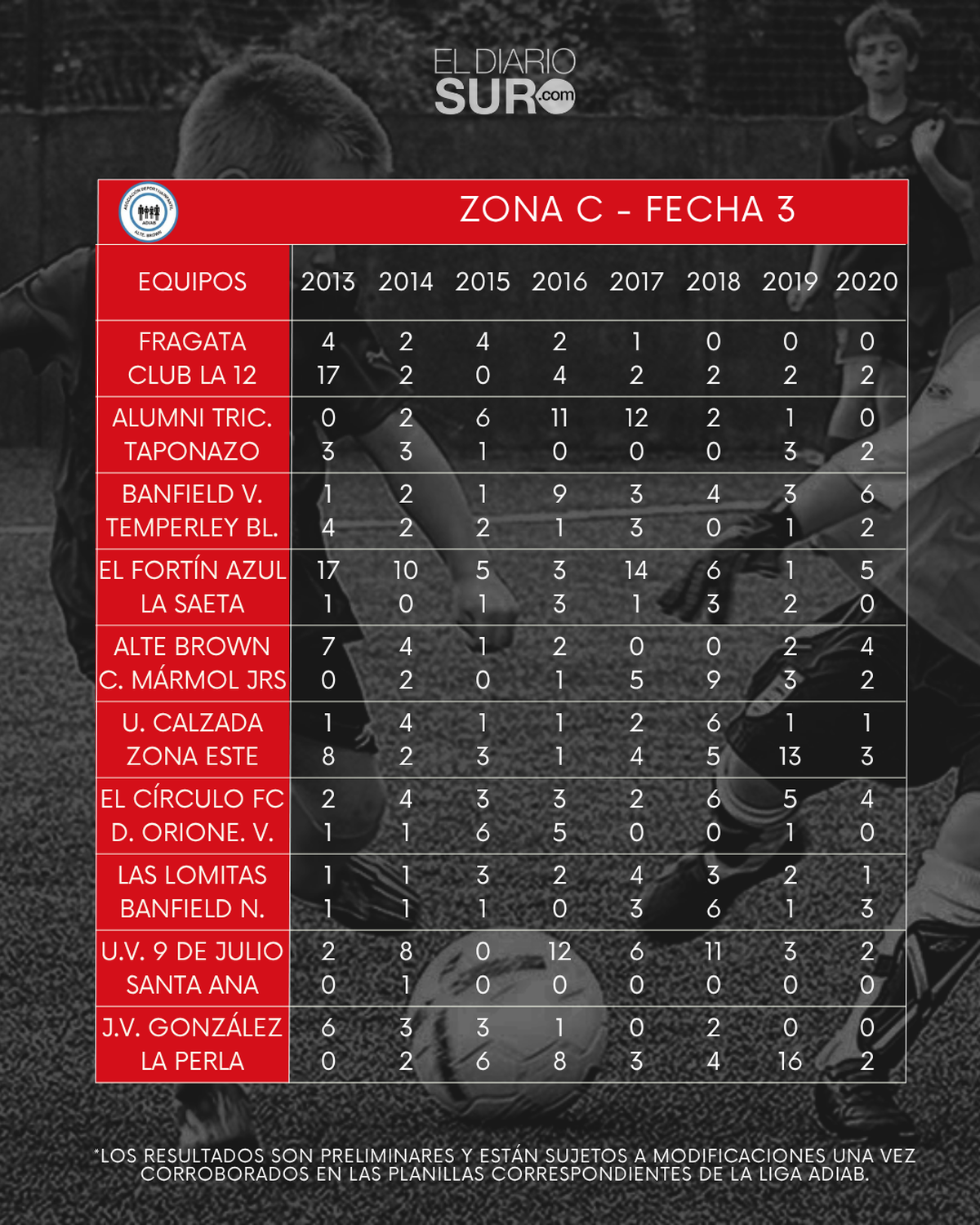 El pasado sábado, las zonas A, B y C disputaron la fecha 3 de la liga ADIAB, mientras que la D jugó su primer partido en la competición.