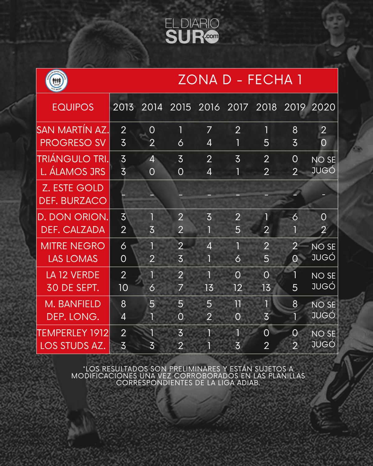 En ese sentido, los resultados son preliminares y están sujetos a modificaciones una vez corroborados en las planillas correspondientes de la liga ADIAB. No son información definitiva.
