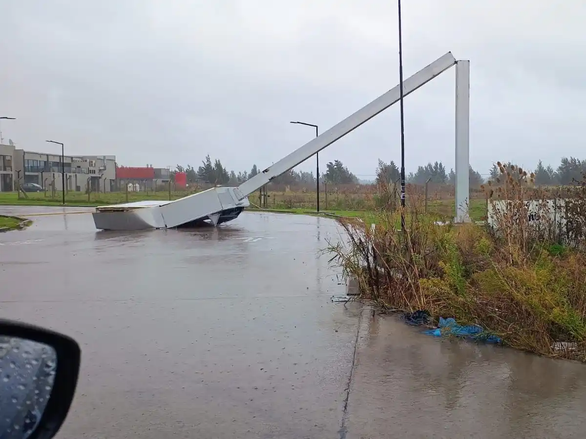 El cartel quedó apoyado sobre el propio establecimiento, sin generar mayores complicaciones estructurales visibles. De todas maneras, se espera que en las próximas horas se realicen las tareas correspondientes para su remoción y evaluación de seguridad.