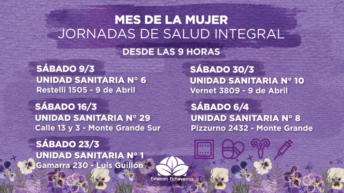 En el Mes de la Mujer, los sábados 9, 16, 23 y 30 de marzo, y también el sábado 6 de abril, el Municipio de Esteban Echeverría realizará jornadas de salud integral en unidades sanitarias del distrito.