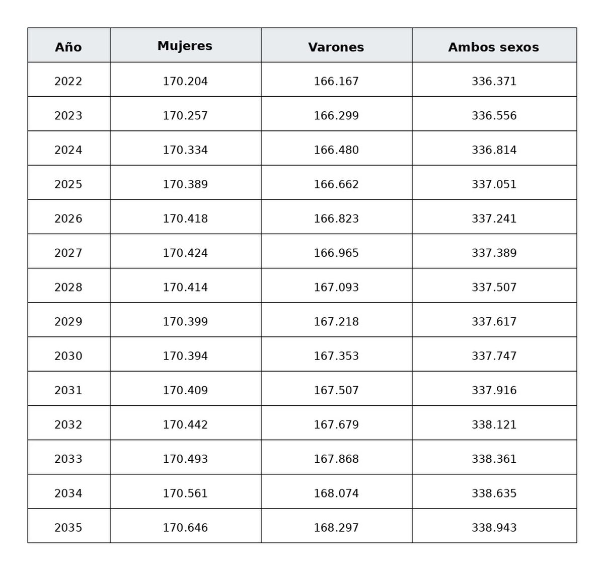 Según los datos difundidos por el organismo, la población del distrito pasaría de 336.371 habitantes en 2022 a 338.943 en 2035, lo que implica un crecimiento menor a un 1%, equivalente a 2572 personas en más de una década. De ese total proyectado, 170.646 serían mujeres y 168.297 varones. Este crecimiento sería progresivo: para 2026 se estiman 337.241 habitantes, para 2030 unos 337.747 y en 2034 aumentaría a 338.635 la población del partido.