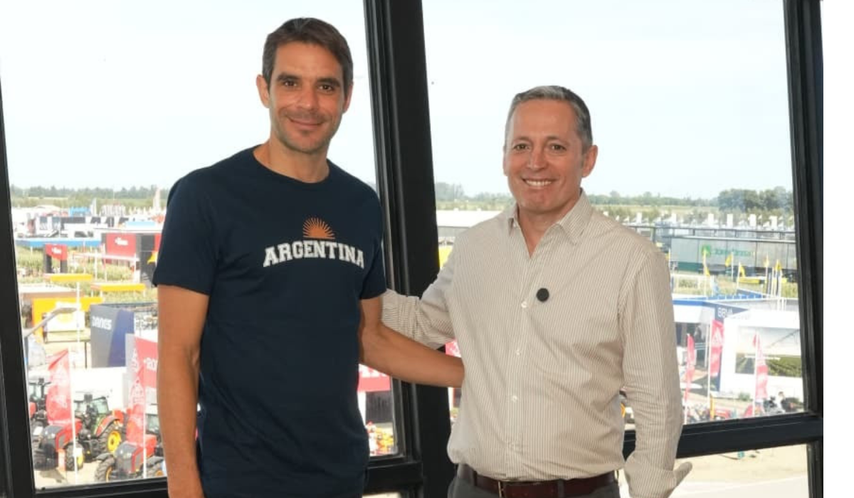 Durante la visita, Gray recorrió distintos stands y fue recibido en el espacio de la empresa Altina por su titular, Esteban Pivetta, y por el gerente comercial, Alejandro Blanda. La firma, fundada en 1953, se dedica a la fabricación y comercialización de maquinaria e implementos para el sector agropecuario.
