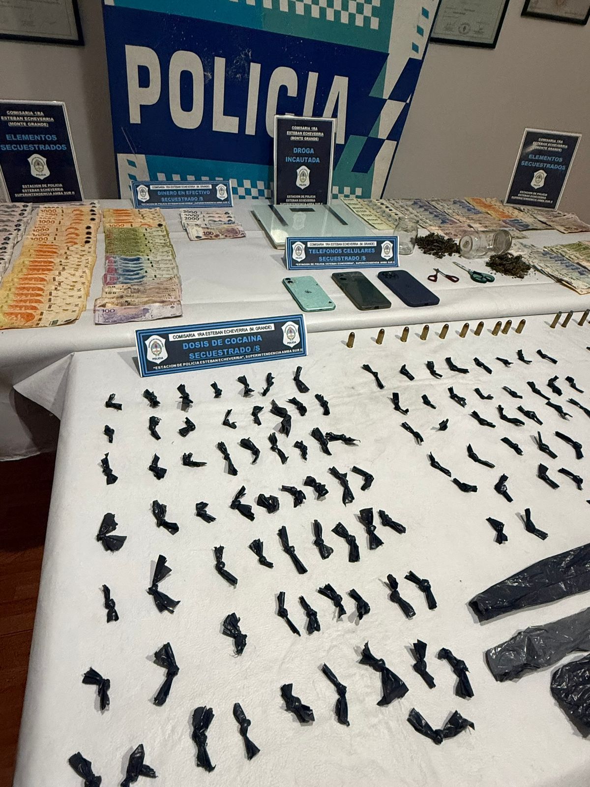 También incautaron teléfonos celulares, dinero en efectivo que sería producto de la venta de droga y una motocicleta con la numeración del motor adulterada, según indicaron. Los detenidos quedaron a disposición de la Fiscalía interviniente, que continúa con la investigación.