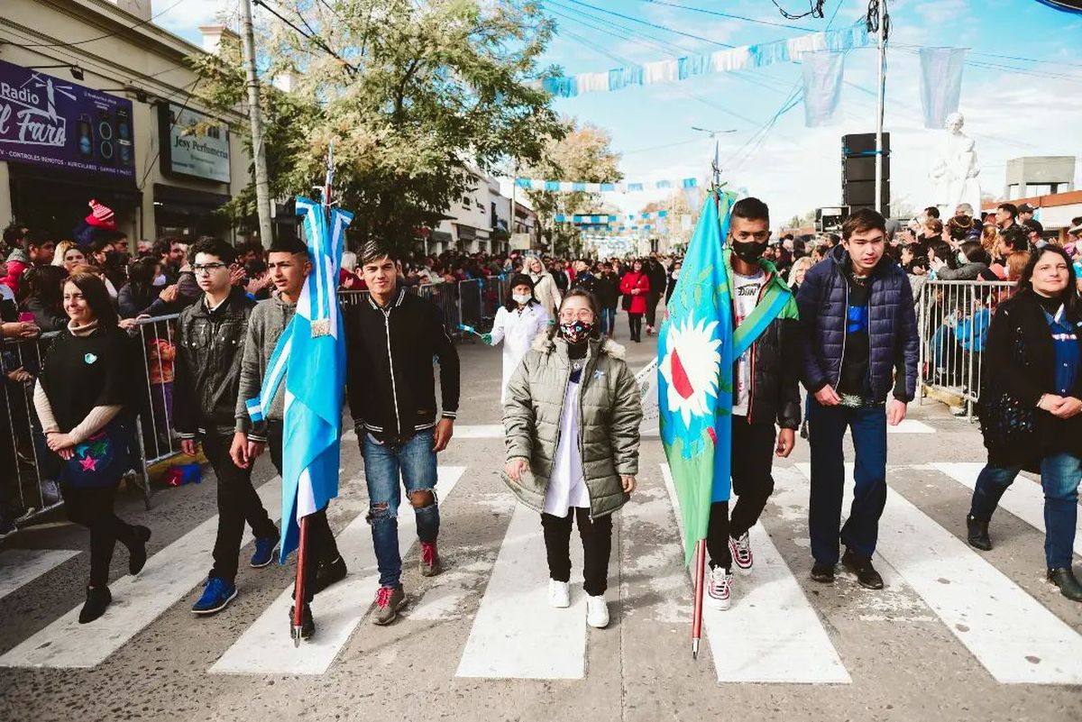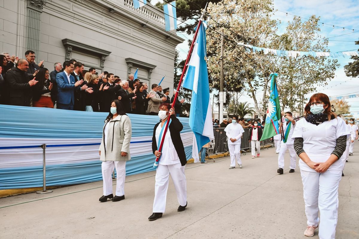 Todo empezó cerca de las 11 con el desfile de escuelas de la ciudad, donde los alumnos se llevaron todas las miradas y aplausos. Más atrás circuló el personal de salud del Hospital Ramón Carrillo, que atravesó dos años de trabajo incansable contra el covid.