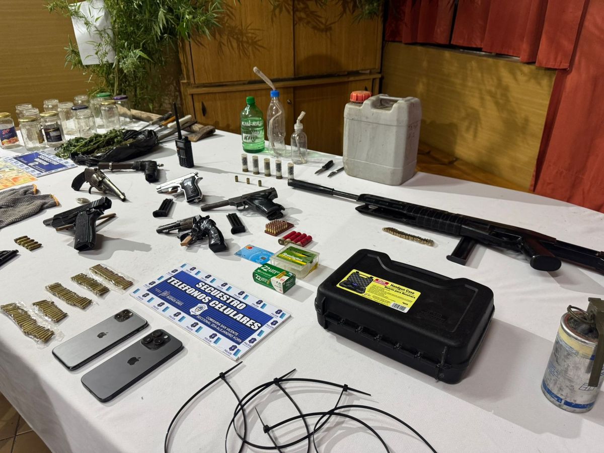 Durante los allanamientos, los efectivos secuestraron una importante cantidad de armas de fuego, entre ellas pistolas, revólveres y una carabina, varias de ellas con numeración suprimida. También incautaron municiones de distintos calibres.