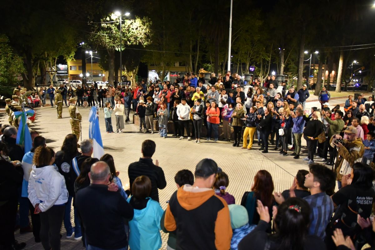 A las 00 horas, la vigilia se trasladará con un desfile de instituciones a la Plaza Mariano Moreno, donde se realizará el acto central frente al monumento conmemorativo, con la participación del tenor Sergio Guzelian, que interpretará la Marcha de Malvinas y el Himno Nacional.